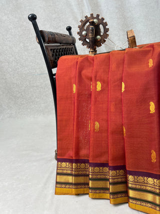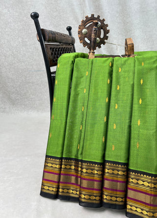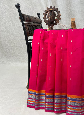 GADWAL GAP BORDER MEENA BUTTA COTTON SILK SAREE