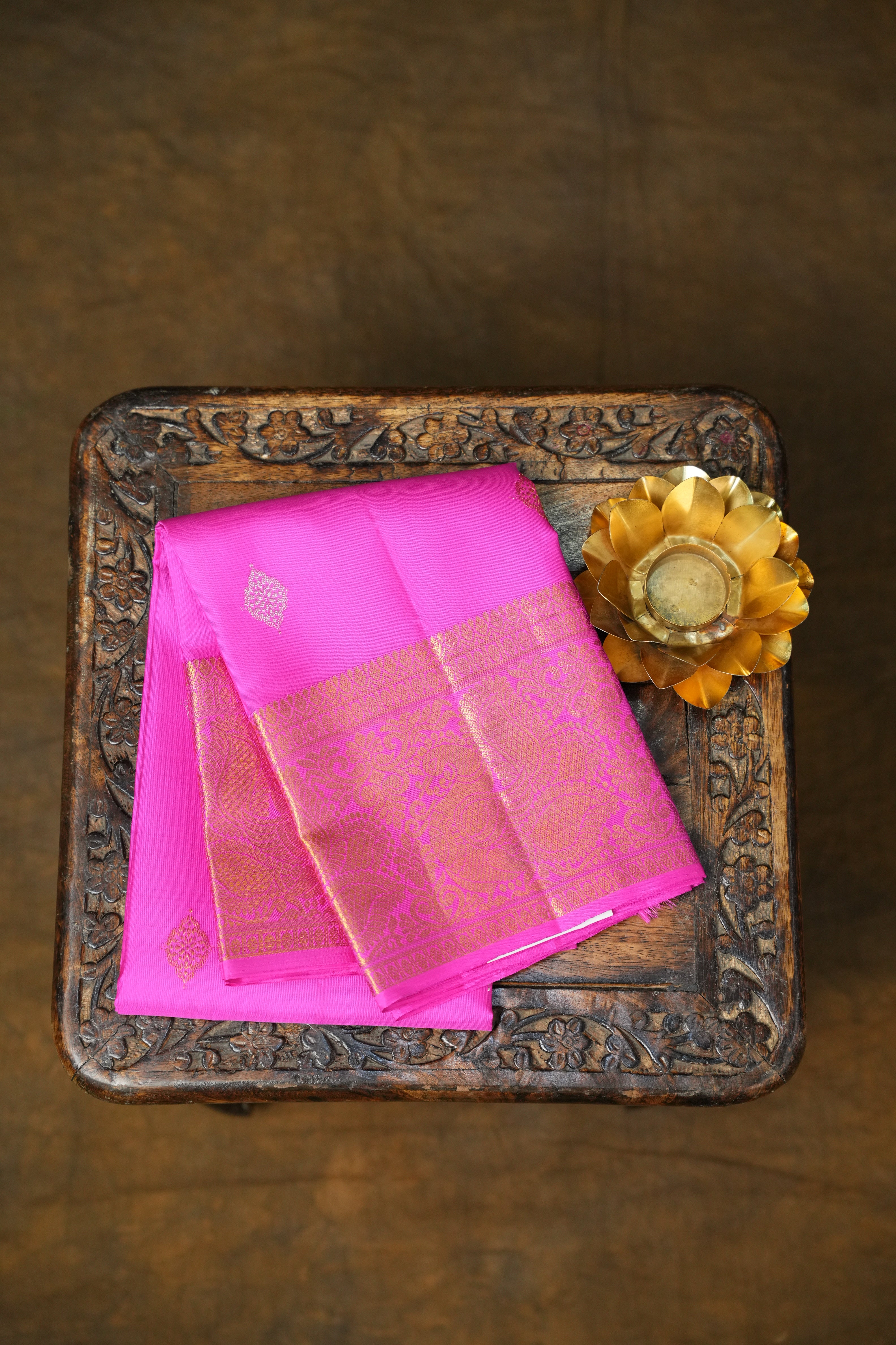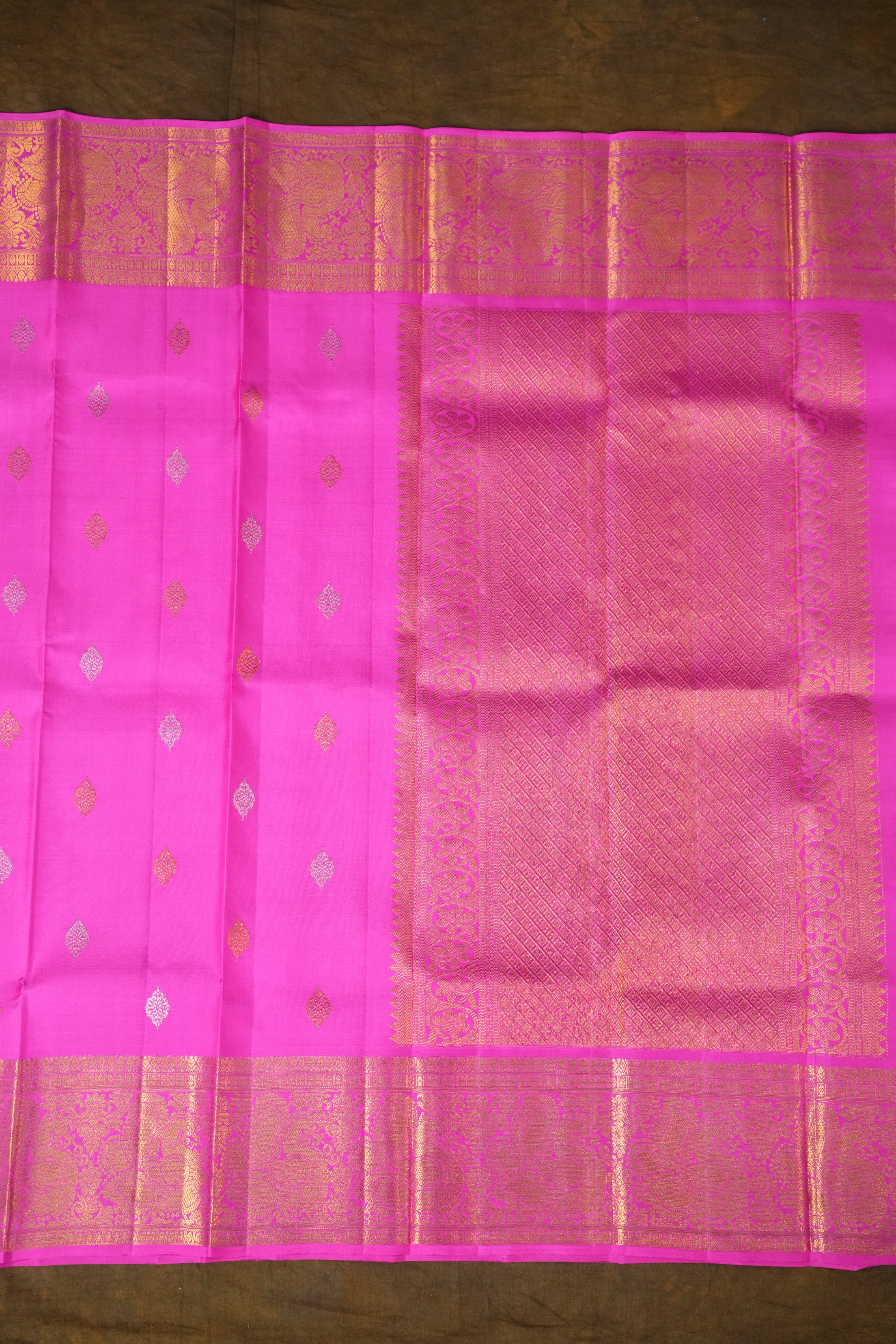 This elegant Gadwal Pure Silk Handloom Dupatta features a Pink body with gold and silver motifs. The highlight is its grand pallu, adorned with exquisite motifs and traditional patterns, self bordered with a subtle gold zari detailing. A perfect blend of heritage and luxury, this dupatta adds a regal charm to any attire. Silk Mark Certified.