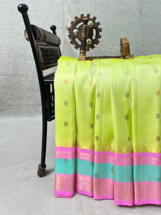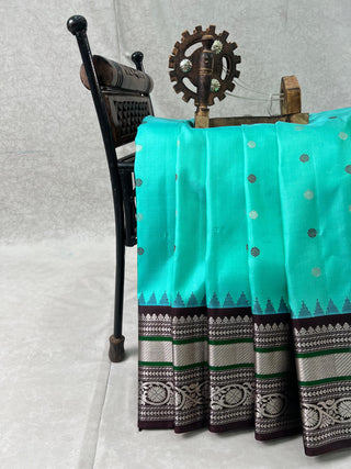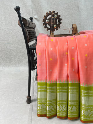 GADWAL PURE SILK GAP BORDER MEENA BUTTA HANDLOOM SAREE