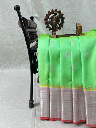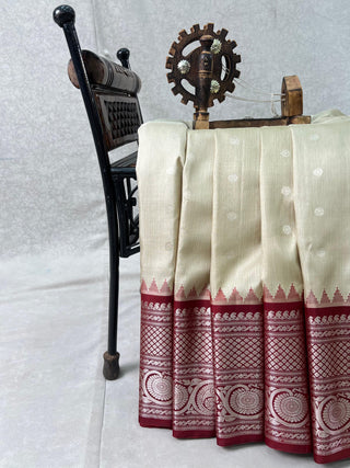 GADWAL PURE SILK SILVER ZARI GAP BORDER SAREE