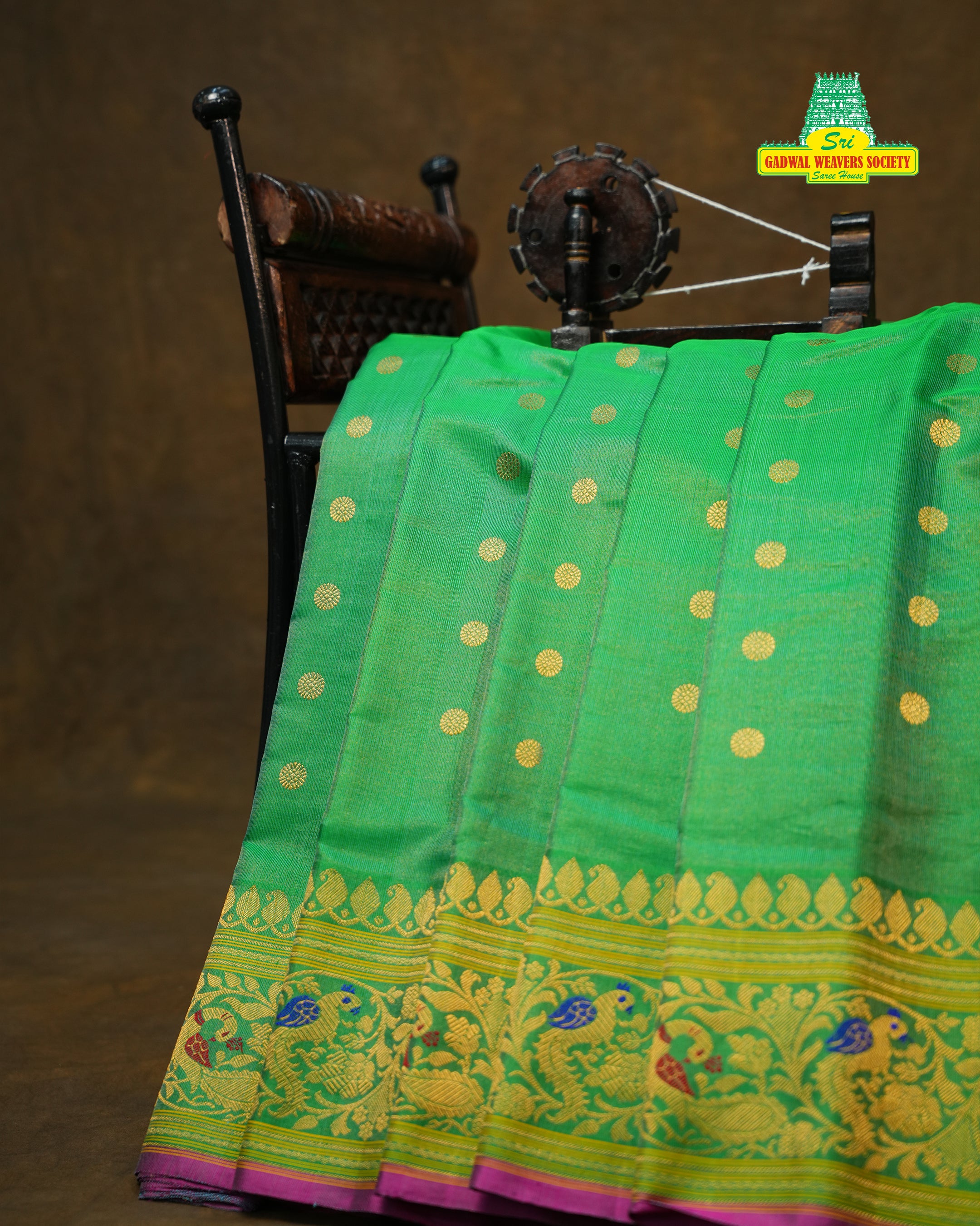 colorful peacock and floral motifs in shades of blue, green, and red - a true reflection of Gadwal’s weaving heritage. The elegant
