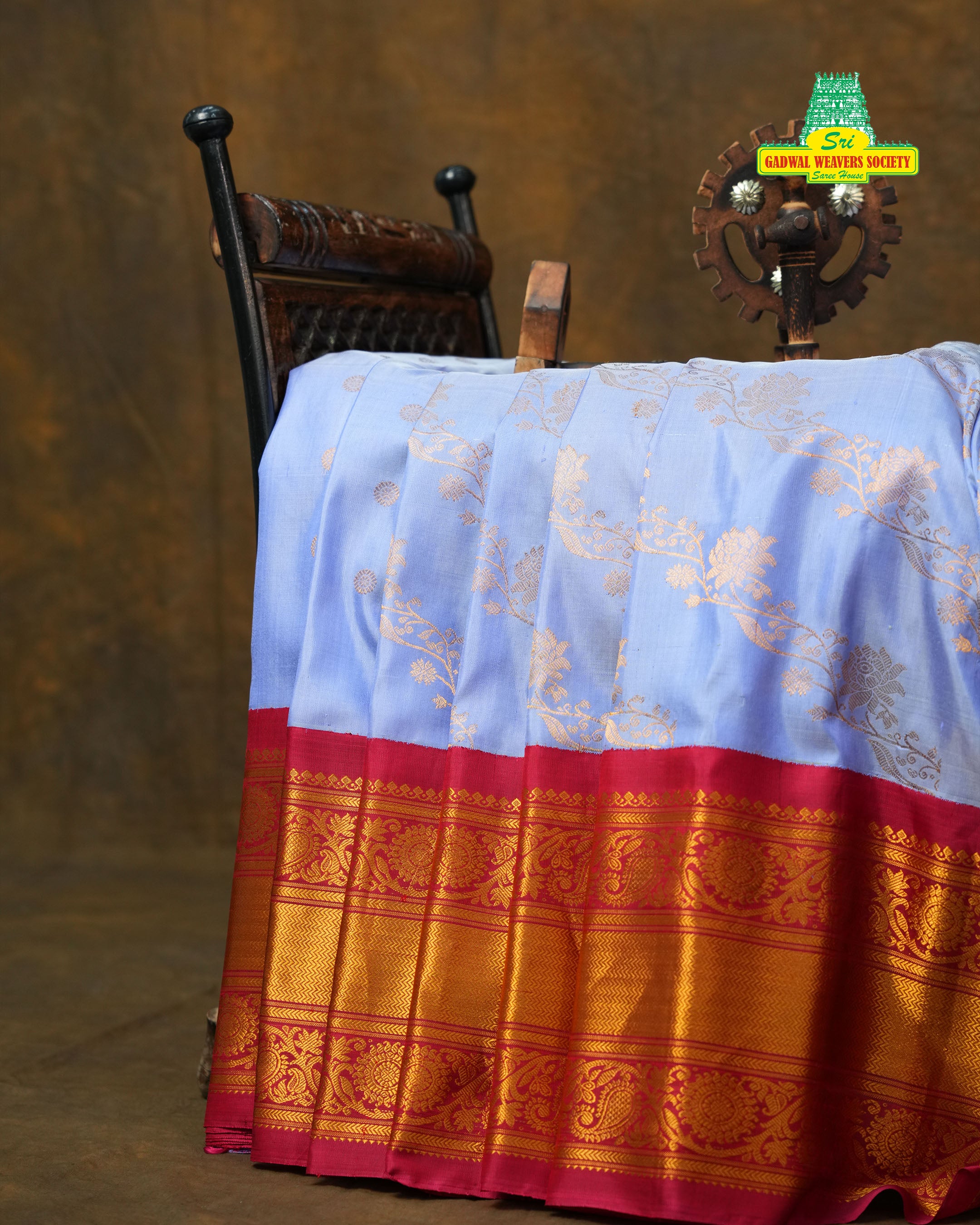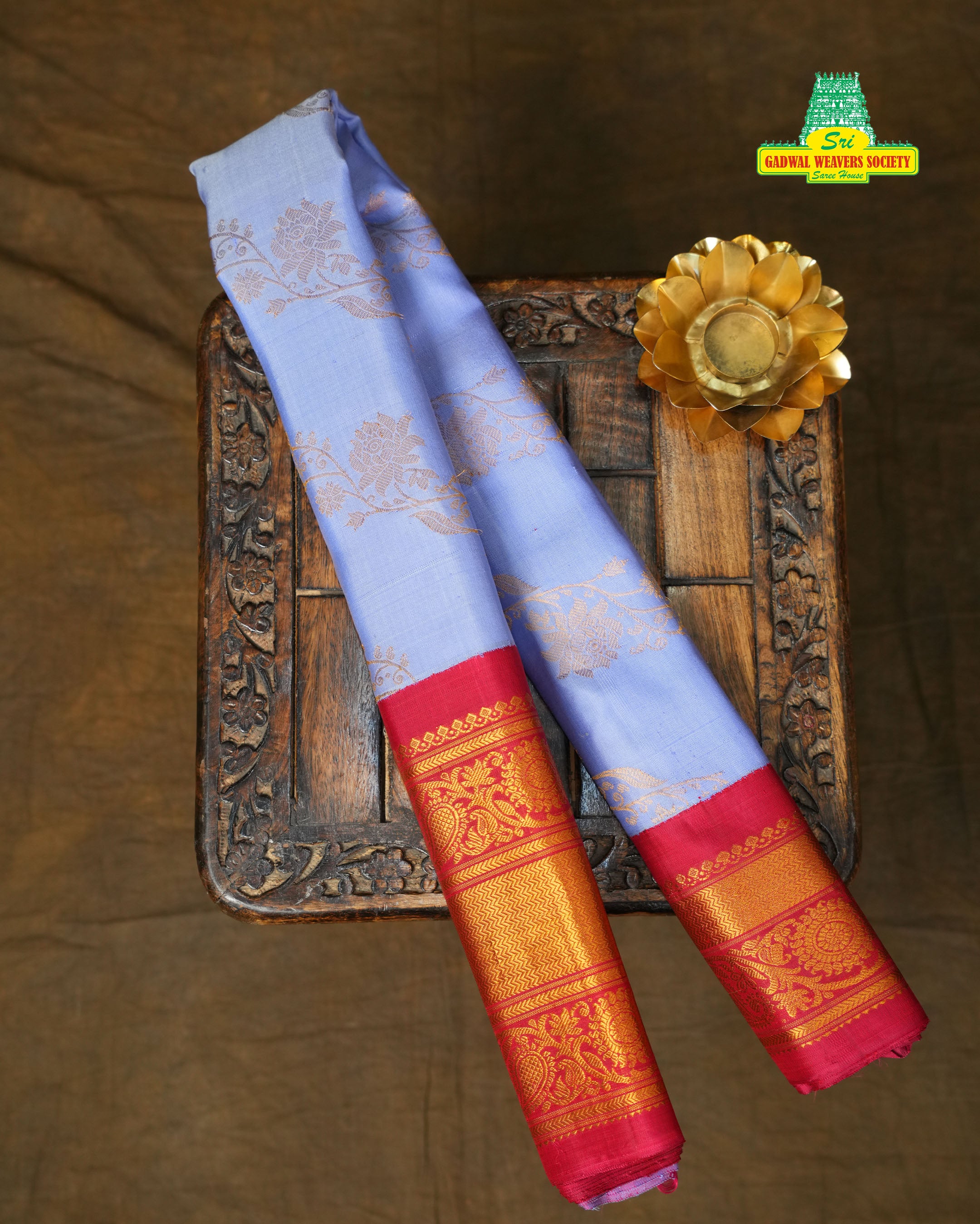 This exquisite Gadwal Pure Silk Kuttu Border Handloom Saree features a Lavender body adorned with intricate Kalanjali designs woven gracefully across the fabric, showcasing timeless craftsmanship. The highlight of this masterpiece is its signature Kuttu-style Border, enhanced with rich gold zari that adds a regal charm to the saree. It comes paired with a Contrast Blouse, perfectly complementing the vibrant body shade. Crafted with premium quality and authenticity, this saree is Silk Mark Certified.