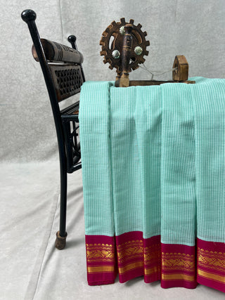 GADWAL PURE SILK GAP BORDER CHECKS BUTTA SAREE