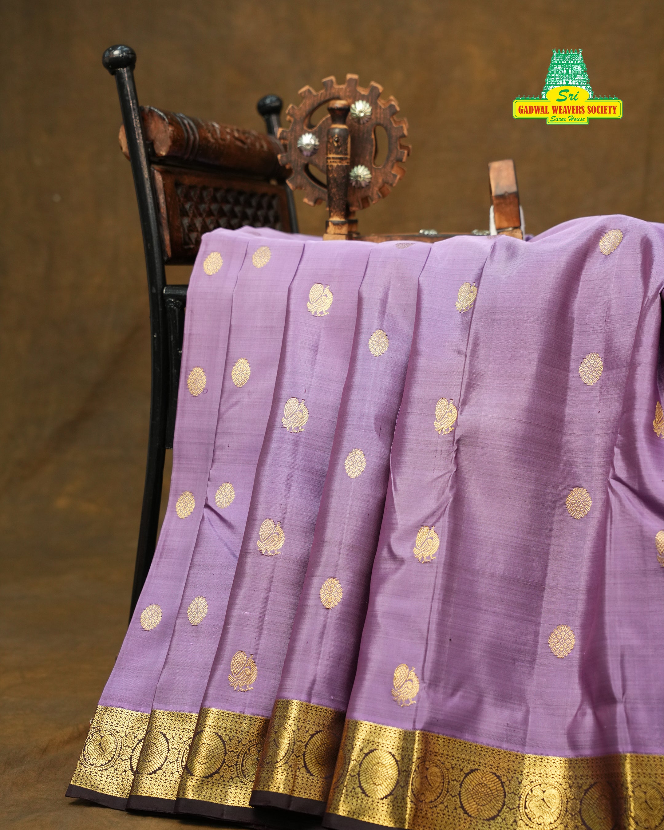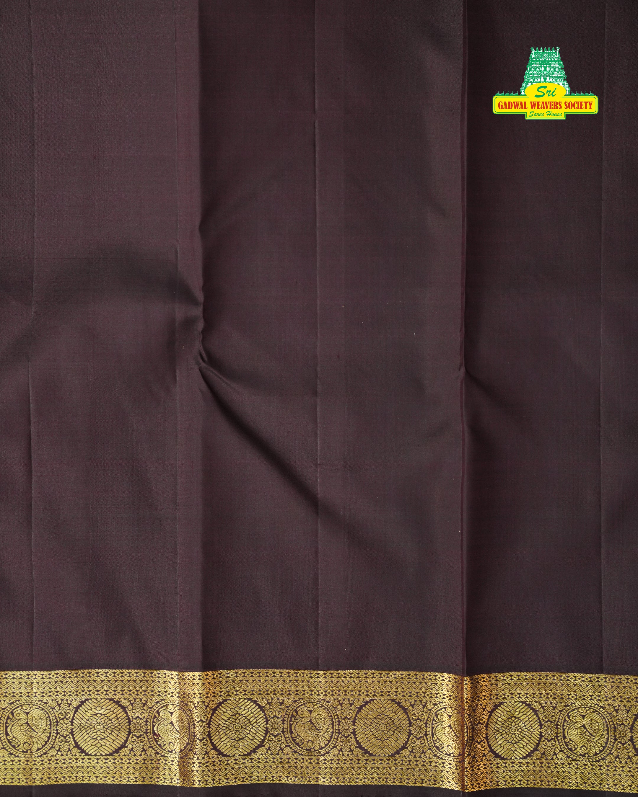 This elegant Kanchipuram Pure Silk Small border Handloom Saree is a beautiful blend of tradition and luxury. The saree features a rich, Onion Pink body that radiates sophistication, complemented by intricate gold zari motifs scattered across the body. The golden zari Chocolate brown border intricately woven with timeless floral peacock design showcases traditional craftsmanship, with paisley and geometric motifs intricately woven to perfection. This saree comes with Contrast Blouse and it is Silk mark certified.