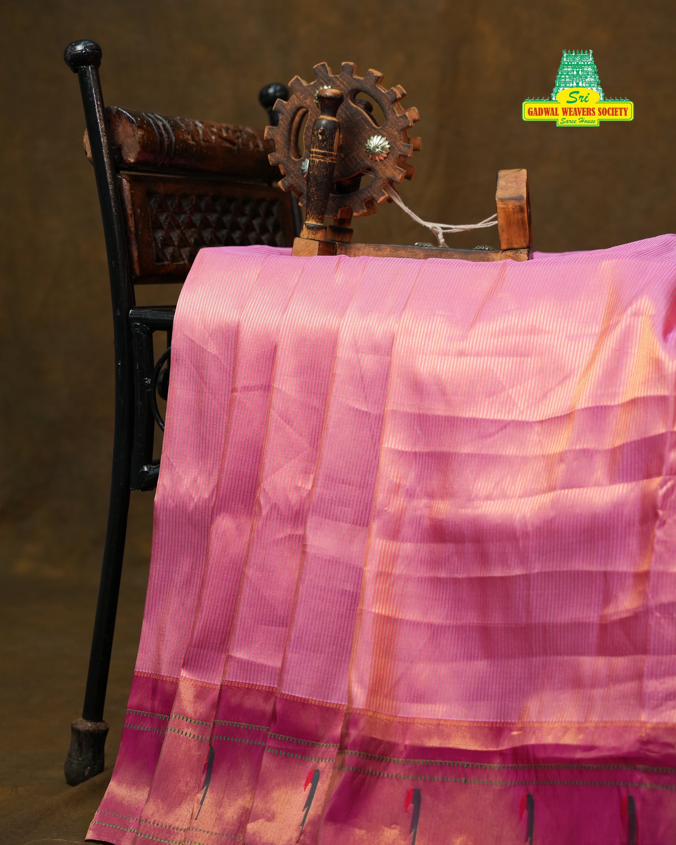 This stunning Paithani Pure Silk Handloom Saree exudes traditional elegance and timeless charm. Woven in radiant shades of Light Pink with golden zari detailing, the Pink tissue border features classic Paithani motifs and intricate Stripes, showcasing the craftsmanship of skilled artisans. Perfect for festive occasions, weddings, or cultural celebrations, this saree is a true testament to heritage weaving and refined style.  comes with contrast blouse and Silk Mark Certified.