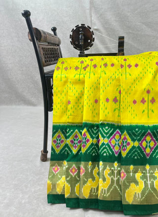 Shop Pochampally Ikat Weaves - handwoven Telangana Ikat with vibrant geometric patterns, contrast borders & lightweight fabric for festive & casual wear.