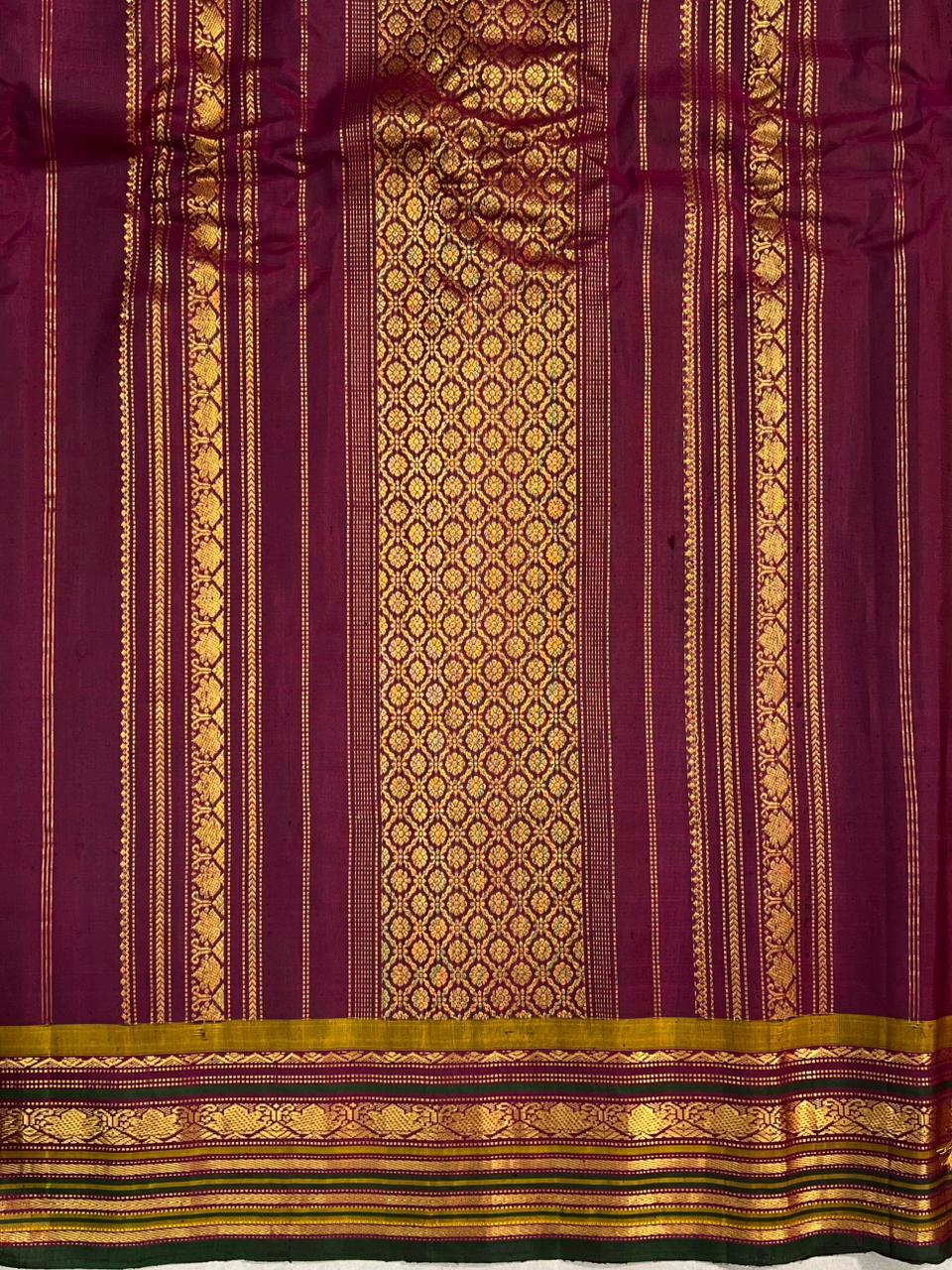 This elegant Gadwal Pure Cotton Checks Handloom Saree features a subtle Peacock Blue base adorned with fine stripes, giving it a classy and timeless appeal. The contrasting borders in Yellow, gold zari, and green add a vibrant touch, beautifully balancing tradition with sophistication. Lightweight and comfortable, it is perfect for everyday wear as well as special occasions. Blouse not included.